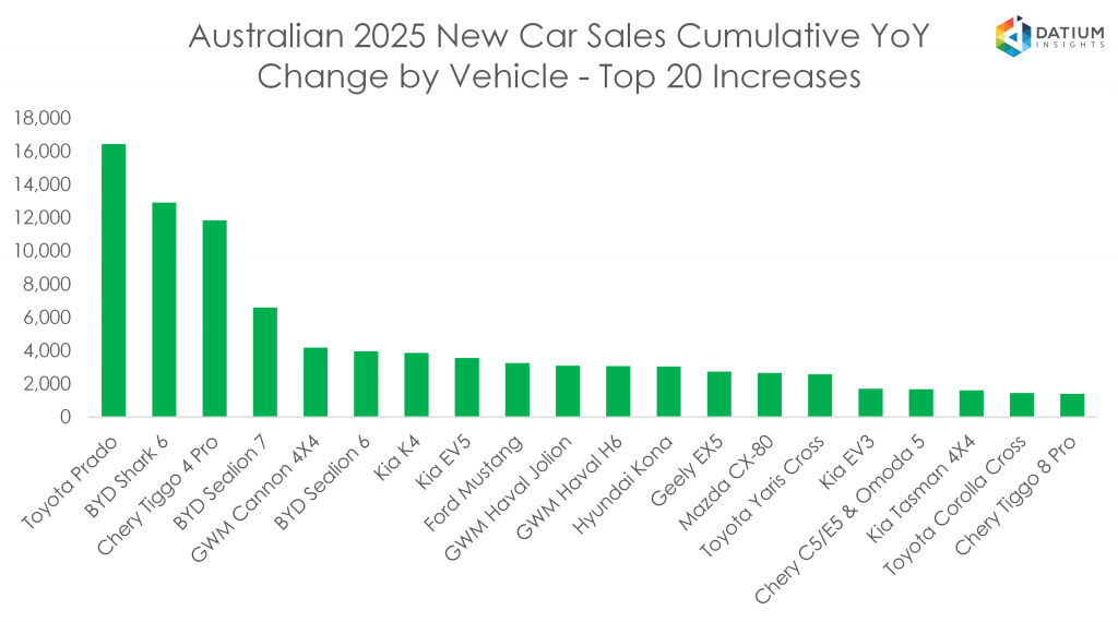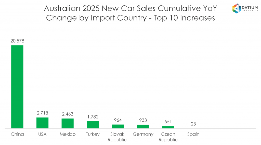• Sales of imported vehicles from China continue to skyrocket with an increase of 20,578 units compared to 2024