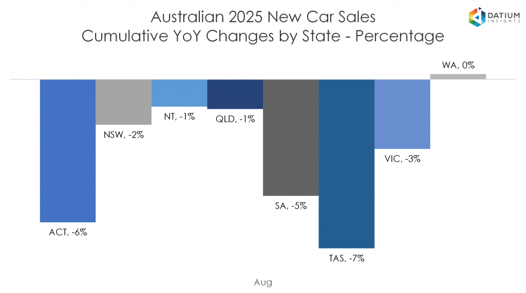 • Sales fell across most states, with the TAS experiencing the largest drop at -7% YoY.