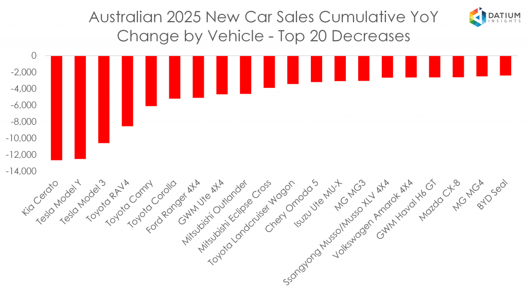 - Kia Cerato (-12,678 units)