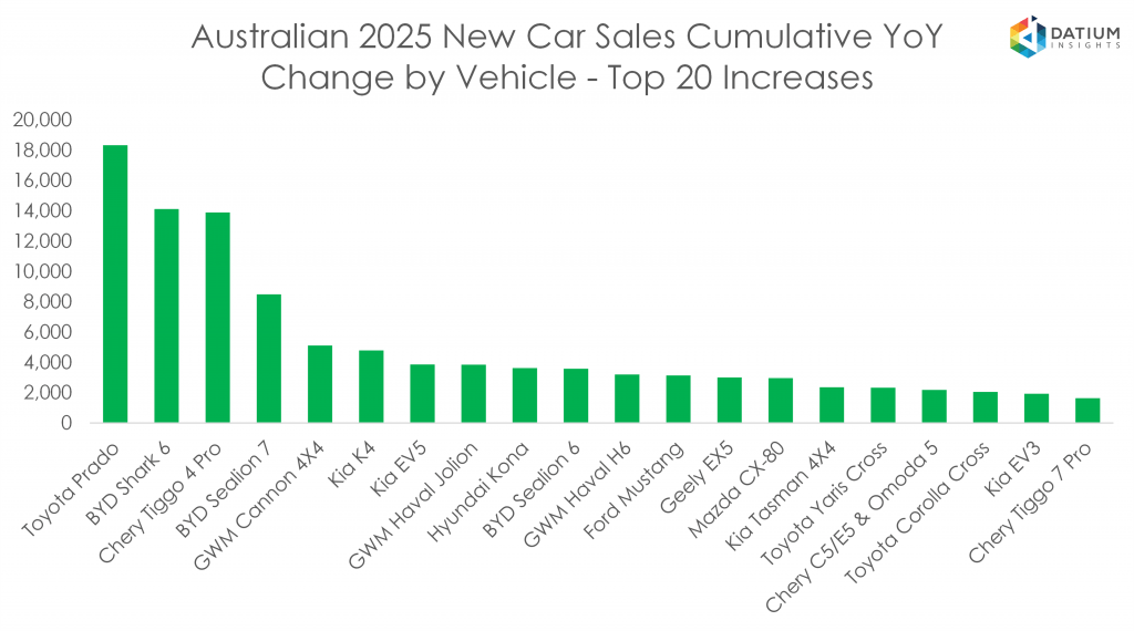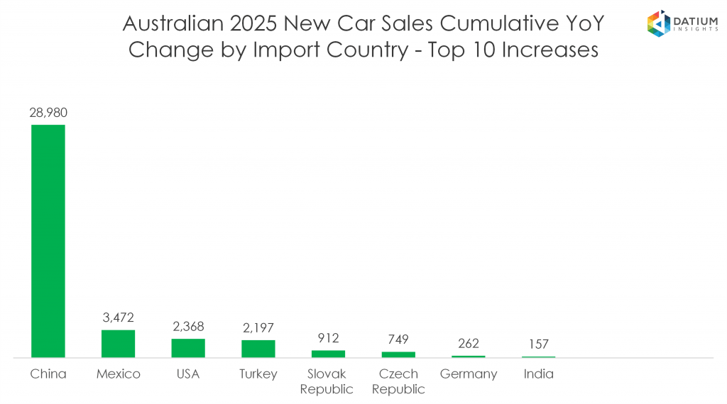 - Sales of imported vehicles from China continue to skyrocket with an increase of 28,980 units compared to 2024