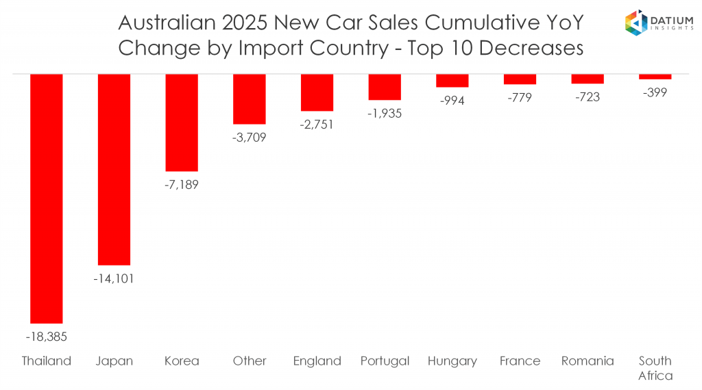 - Sales of imported vehicles from Thailand seeing the largest decrease of 18,385units compared to 2024